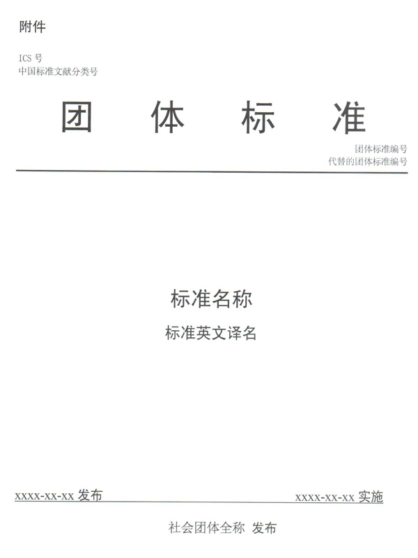團(tuán)體標(biāo)準(zhǔn)的封面格式應(yīng)當(dāng)符合要求,具體格式見(jiàn)附件。