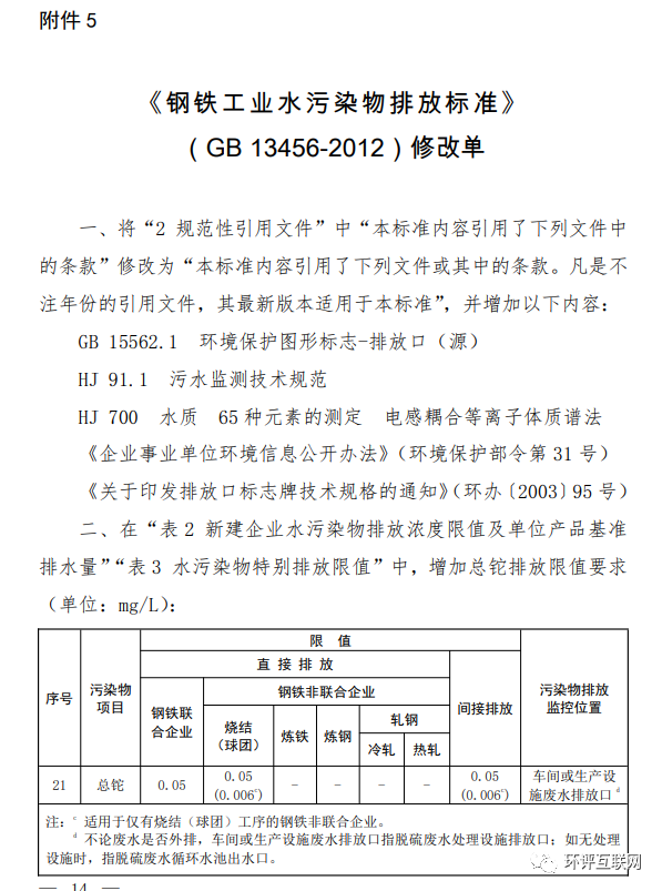 5.《鋼鐵工業(yè)水污染物排放標(biāo)準(zhǔn)》(GB 13456-2012)修改單