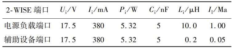 表2 2-WISE電源負載端口和輔助設備端口本質安全參數限值