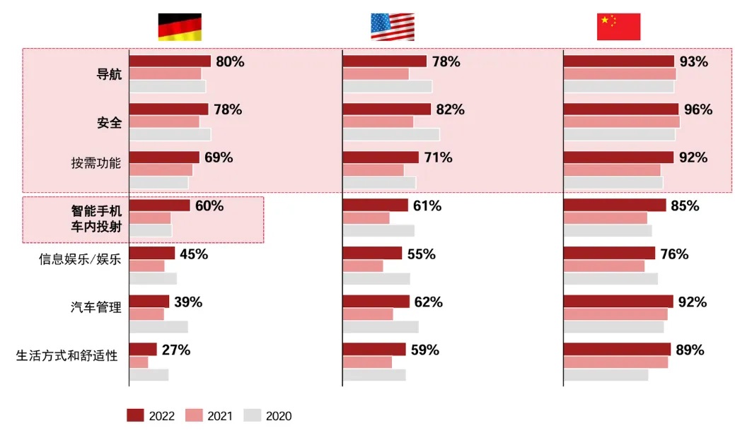 思略特的調(diào)研也發(fā)現(xiàn)了同樣的情況,中國汽車消費者對功能與場景的需求最為清晰全面。上述調(diào)研均來自外資機(jī)構(gòu),最大程度上杜絕了“自賣自夸”嫌疑。普華永道思略特《2023年數(shù)字化汽車報告(首篇)》,2023-4