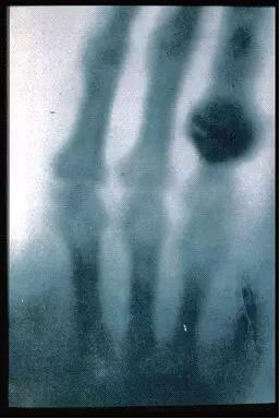 圖2 第一張X 射線照片——倫琴夫人手指X 射線照片