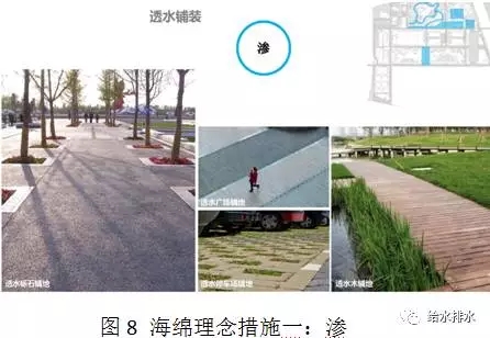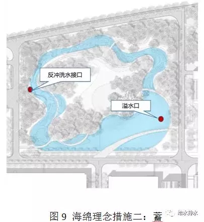 滲:通過透水礫石鋪地、透水廣場鋪地、停車場鋪地以及透水木鋪地,將雨水盡快滲入,減少地表徑流。同時,涵養(yǎng)地下水,補充地下水的不足,還能通過土壤凈化水質,改善水廠的微氣候(見圖8)。