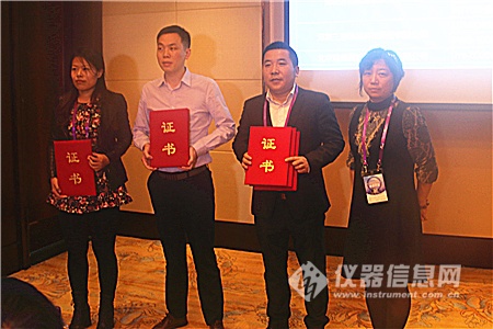 接著,中國儀器儀表行業(yè)協(xié)會高級顧問閆增序、北京科學儀器裝備協(xié)作服務中心主任孫月琴、北京材料分析測試服務聯(lián)盟秘書長關璐分別為到場的獲獎儀器企業(yè)代表頒獎。