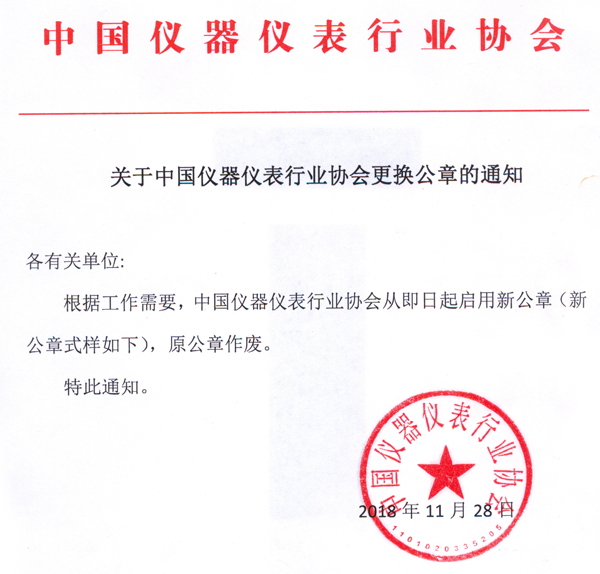 關于中國儀器儀表行業協會更換公章的通知