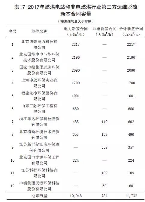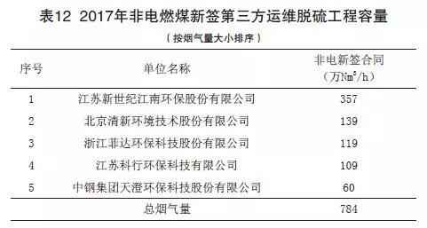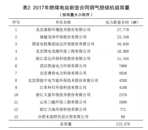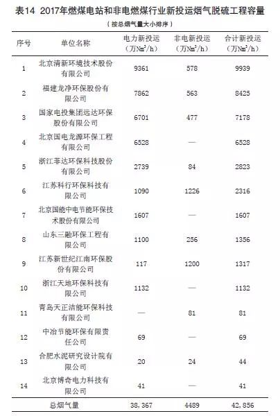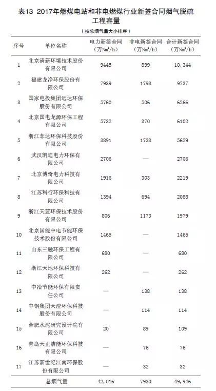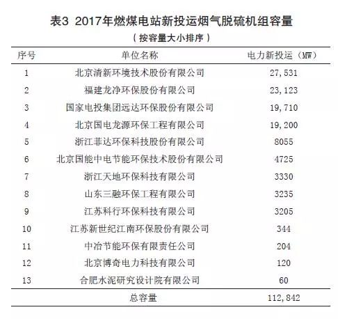 (2)2017年度燃煤煙氣全行業(yè)新投運脫硫工程容量