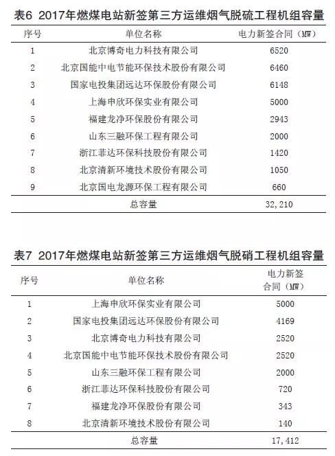 (5)2017年度燃煤煙氣全行業(yè)新簽第三方運維容量