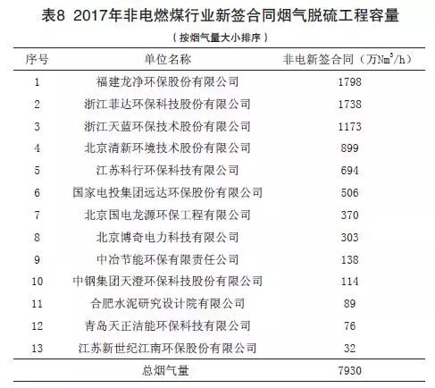 (1)2017年度燃煤煙氣全行業(yè)新簽脫硫工程合同容量