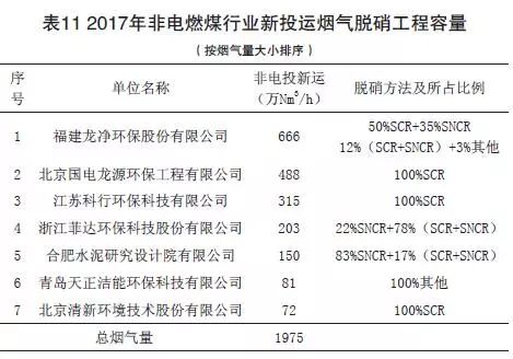 (4)2017年非電燃煤行業(yè)新投運脫硝工程容量