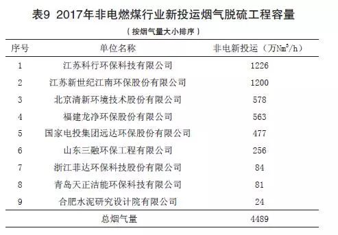 (2)2017年非電燃煤行業(yè)新投運脫硫工程容量
