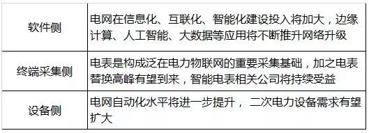 我們認(rèn)為,泛在電力物聯(lián)網(wǎng)的發(fā)展將使得三個方向相關(guān)標(biāo)的受益:
