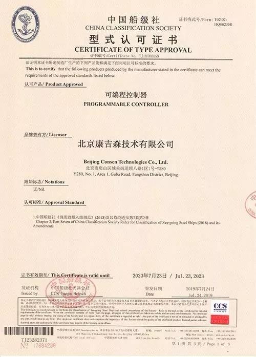 北京康吉森自主知識(shí)產(chǎn)權(quán)產(chǎn)品TSxPlus系統(tǒng)于近期順利通過(guò)中國(guó)船級(jí)社(CCS)認(rèn)證,并取得了CCS頒發(fā)的中國(guó)船級(jí)社型式認(rèn)可證書(shū)。