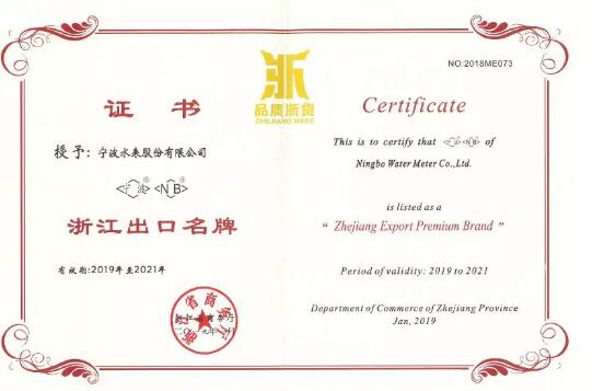 省級出口名牌是體現(xiàn)外貿(mào)高質(zhì)量發(fā)展的重要標志,寧波水表于2015年首獲“浙江出口名牌”榮譽,此次為復(fù)評通過。寧波水表近年來不斷加強品牌建設(shè),持續(xù)擴大出口貿(mào)易和對外交流,充分發(fā)揮自身的品牌優(yōu)勢,致力于發(fā)展成為集智慧計量與營運、智慧用水管理、水質(zhì)實時監(jiān)控等綜合集成的智慧水務(wù)解決方案提供商,全面提升公司服務(wù)國內(nèi)外供排水企業(yè)的能力。