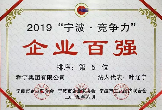 2019“寧波·競爭力”企業(yè)百強第5位(較去年上升10位)
