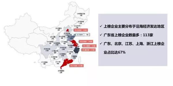根據榜單分析,專利500強企業分布于28個省級行政地區,超過70%的專利五百強企業位于沿海經濟發達地區。其中入圍企業數量最多的五個省市,廣東省、北京市、江蘇省、上海市和浙江省共入圍334家企業,占比達67%,這五個地區的專利申請總量和2018年專利運營總量均排名前列。