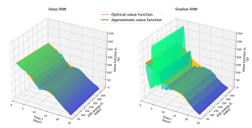 在題為Dynamic Energy Management of a Microgrid using Approximate Dynamic Programming and Deep Recurrent Neural Network Learning的研究論文中,智能微電網(wǎng)課題組在國際上首次提出了一種基于深度強化學(xué)習(xí)技術(shù)的微電網(wǎng)實時能源優(yōu)化方法。該方法考慮可再生能源出力的隨機性及其對電網(wǎng)交流潮流約束的影響,利用一個深度遞歸神經(jīng)網(wǎng)絡(luò)對微電網(wǎng)當(dāng)前運行狀態(tài)進行特征提取,并在保證微電網(wǎng)安全性的基礎(chǔ)上,對微電網(wǎng)各分布式發(fā)電單元進行調(diào)度,實現(xiàn)微電網(wǎng)運行的實時優(yōu)化控制。此外,相對于目前的微電網(wǎng)運行控制方法,提出的方法完全是基于學(xué)習(xí)的,不需要對可再生能源出力進行預(yù)測建模,表現(xiàn)出很好的自適應(yīng)性。該工作不僅是智能電網(wǎng)優(yōu)化調(diào)度研究中新的探索和突破,也為未來應(yīng)用人工智能技術(shù)推動智能電網(wǎng)發(fā)展提供了新的研究思路。
