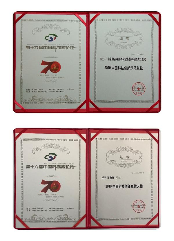 本屆論壇由中國技術市場協會、中國高科技產業化研究會、中國生產力促進中心協會、中國科技體制改革研究會、發現雜志社聯合主辦,在本次大會上,憑借多年來的堅持創新發展,北京康吉森榮膺“2019中國科技創新示范單位”、中國自動化集團總裁北京康吉森董事長周政強先生榮膺“2019中國科技創新卓越人物”。