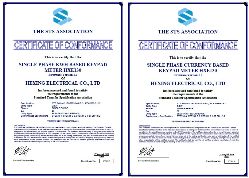 近日,海興預(yù)付費表計成功通過STS認證測試取得STS2.0證書,這標志著海興是全球首家通過STS2.0完整和穩(wěn)定一致性測試配套規(guī)范標準(STS531 1.9.2系列)的廠家。海興做為STS協(xié)會的投票會員,參與第2版STS規(guī)范的討論與修訂,緊跟協(xié)會的步伐全面提升預(yù)付費表計的解決方案,夯實了海興在國際預(yù)付費表計的領(lǐng)先技術(shù)地位。