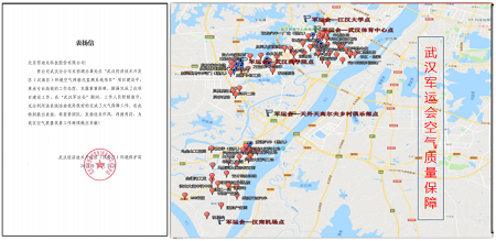 軍運(yùn)會(huì)期間,武漢經(jīng)濟(jì)開發(fā)區(qū)監(jiān)測(cè)區(qū)域內(nèi)PM2.5數(shù)值同期下降20.3%、PM10數(shù)值同期下降20.9%、SO2數(shù)值同期下降14.6%、NO2數(shù)值同期下降4.5%。雪迪龍服務(wù)工程師和現(xiàn)場(chǎng)工作人員始終保持手機(jī)7*24小時(shí)待命,即使是凌晨也安排專人值班確保儀器正確運(yùn)行,確保“軍運(yùn)藍(lán)”,工作成果受到了武漢經(jīng)濟(jì)技術(shù)開發(fā)區(qū)(漢南區(qū))環(huán)境保護(hù)局的嘉獎(jiǎng)。