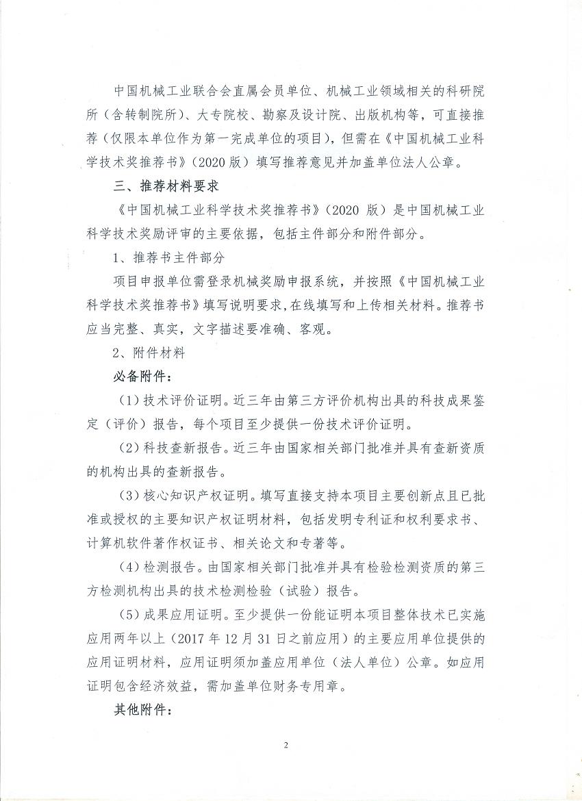 2020年度中國機械工業科學技術獎推薦工作正式開展