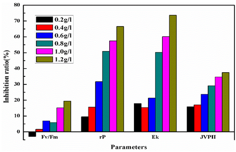 該項研究以葉綠素熒光為藻類光合作用過程探針,開展了苯酚急性毒性作用下的72小時與70分鐘內蛋白核小球藻的光合抑制試驗,研究了不同毒性強度下藻類各光合活性參數的響應規律。結果表明苯酚急性毒性對光合活性參數Fv/Fm、rP、α、Ek、JVPⅡ的抑制效應顯著,5分鐘內毒性效應就能達到穩定。研究結果為水質生物毒性檢測、生態毒理學研究及毒性物質快速檢測等提供了一種新方法。