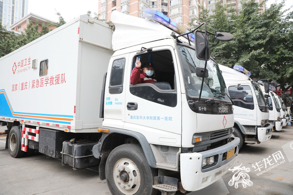 2020年2月4日18時(shí)57分,重慶第四批援鄂醫(yī)療隊(duì)出征,其中不僅包括重慶醫(yī)科大學(xué)附屬第一醫(yī)院的15名醫(yī)護(hù)人員作為國家緊急醫(yī)學(xué)救援隊(duì)成員集結(jié)出征,還有4臺(tái)“變形金剛”式的醫(yī)療設(shè)備車輛一起出發(fā)。這4臺(tái)車分別為普通門診車,醫(yī)學(xué)檢驗(yàn)車,油電車、藥械車,從門診、檢驗(yàn)、拿藥到油電補(bǔ)給,這4輛醫(yī)療設(shè)備車輛就像是一個(gè)“移動(dòng)門診部”。這次抵達(dá)湖北后,將與重慶市衛(wèi)健委增援的其他設(shè)備車輛組成一個(gè)“移動(dòng)”的“二級(jí)甲等醫(yī)院”,助力湖北抗擊疫情。