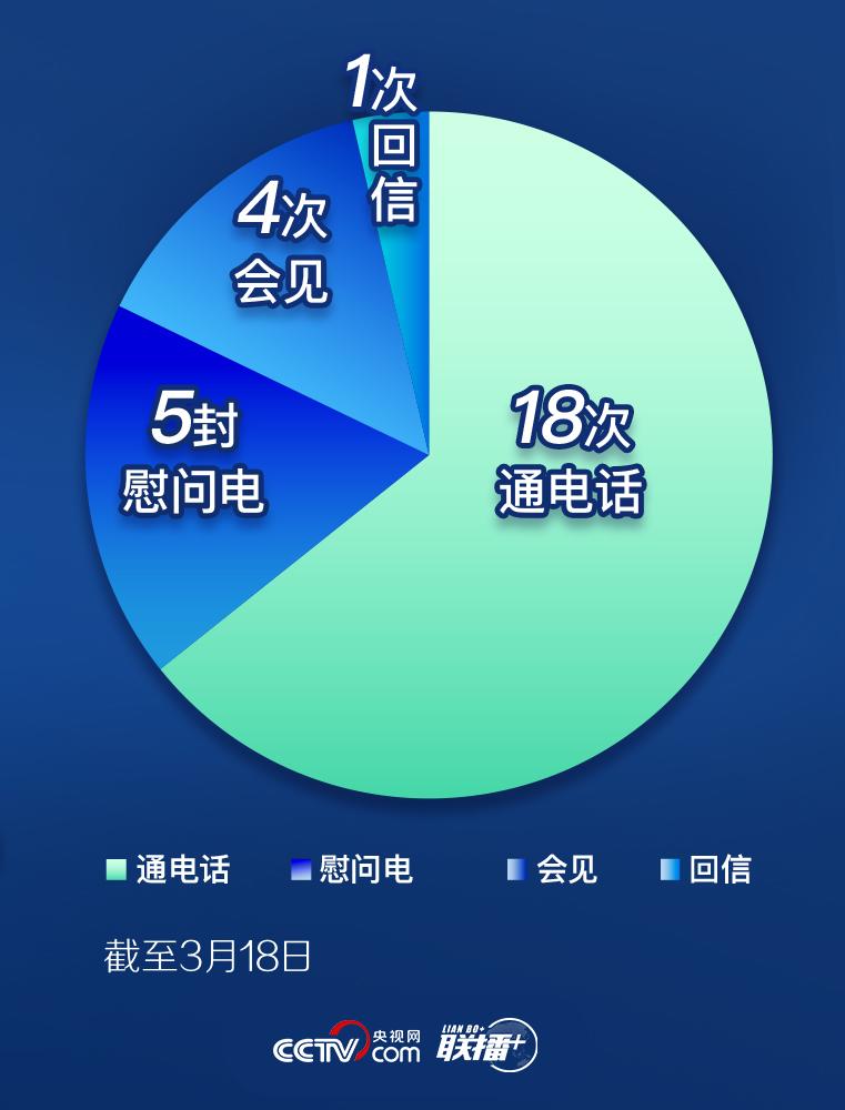 習近平從疫情發生至今,始終與外國國家元首、政府首腦以及國際和地區組織負責人保持溝通。截至318日,他在18通電話、5封慰問電、4次會見、1次回信等互動中,介紹中國疫情防控的舉措、進展,表達休戚與共的中國情誼,傳遞戰勝疫情的信心。