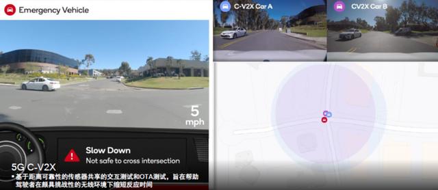 利用這一特性,高通展示了場景中交互性模擬和OTA原型:無論車輛是否具備C-V2X支持,當其駛近交叉路口時,都能夠及時(綜合速度和距離因素)獲知即將穿越路口的車輛尚未減速。