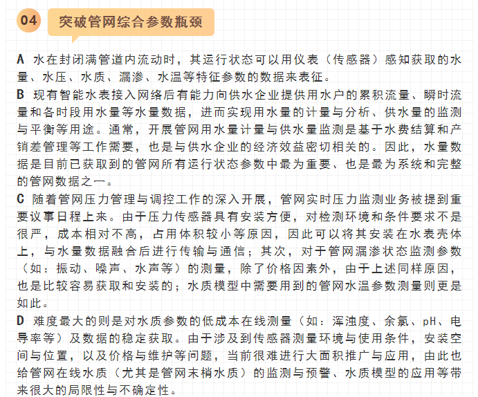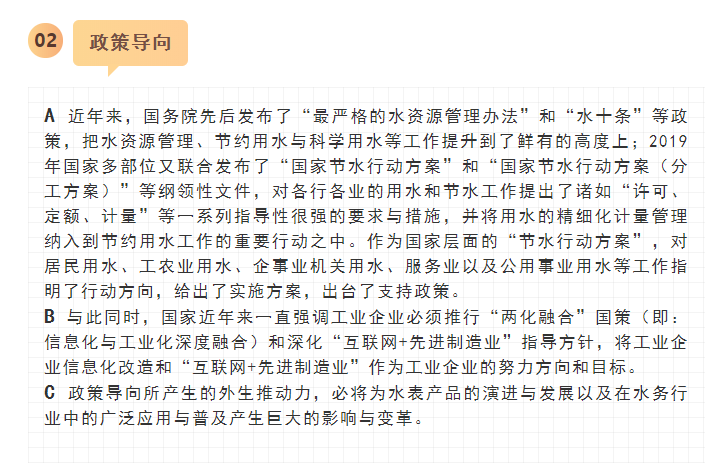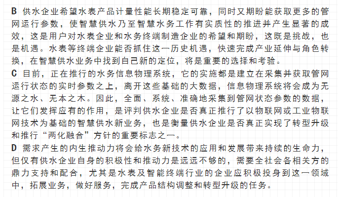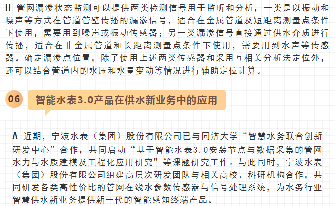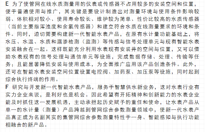 最近,寧水集團已正式啟動新一代智能水表(智能水表3.0)產(chǎn)品及供水新業(yè)務系統(tǒng)的商用化研發(fā)工作,在原先公司多個博士后課題研究基礎上進行商品化與工程化應用研究。可以預期,在不遠將來公司將為供水管網(wǎng)系統(tǒng)提供高性價比的水務綜合大數(shù)據(jù),為管網(wǎng)現(xiàn)代化管理提供信息來源與決策依據(jù)(這方面詳細內(nèi)容可參見附錄:“水表產(chǎn)品演進之路——從智能水表1.0/2.0產(chǎn)品向智能水表3.0產(chǎn)品邁進”一文)。至2020年初,公司在與浙江大學控制科學與工程學院合作基礎上,又先后與同濟大學環(huán)境科學與工程學院、寧波大學信息科學與工程學院等高校共同簽訂戰(zhàn)略合作協(xié)議,并聯(lián)合成立了“水務新技術(shù)研發(fā)實驗室”和“水務信息感知研發(fā)實驗室”,并將與寧波工業(yè)互聯(lián)網(wǎng)研究院等科研機構(gòu)就水務新型傳感技術(shù)、供水關(guān)鍵核心業(yè)務等的解決方案展開合作研究。