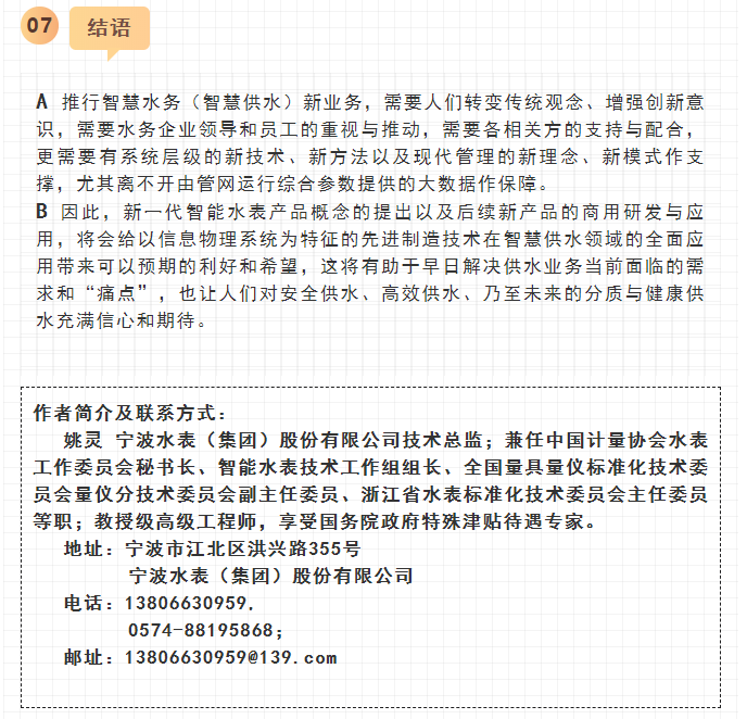 讓我們期盼并祝愿寧水集團新一代智能水表(智能水表3.0)能早日研制成功,早日進入工程化應用,早日為供水企業(yè)提供高性價比的海量數(shù)據(jù)。