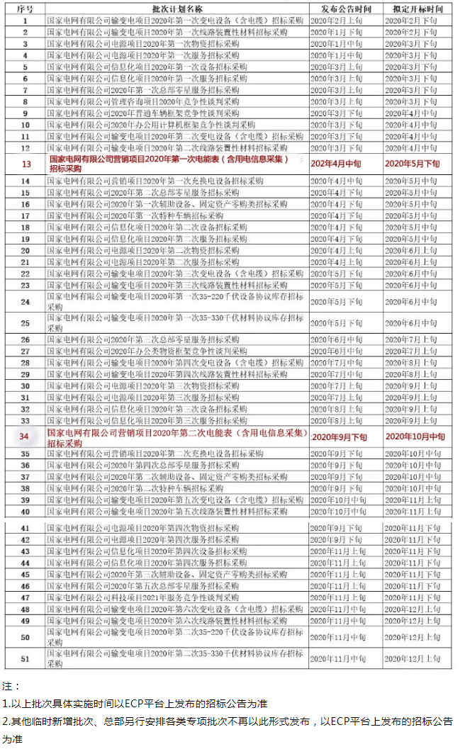 國(guó)網(wǎng)公司近日公布了2020年度集中采購(gòu)計(jì)劃預(yù)安排的公告,其中電能表(含用電信息采集)今年還是進(jìn)行兩次招標(biāo)采購(gòu),第一次已于4月中旬開始投標(biāo),開標(biāo)時(shí)間擬定于5月下旬。第二次招標(biāo)采購(gòu)時(shí)間擬定為9月下旬,開標(biāo)時(shí)間為10月中旬。
