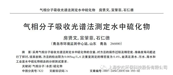 工業廢水中的氨氮,硫化物的含量非常高,且伴隨了色度,濁度等其他指標的影響。在檢測過程中對實驗室操作人員非常不友好。已經有相關的文獻報道測量工業廢水中利用氣相分子吸收光譜法來測定氨氮以及硫化物。與分光光度法進行對比, 氣相分子吸收光譜法具有簡便快速、測量準確等優點。