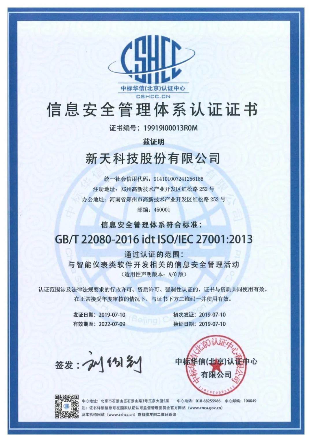 作為國內(nèi)著名的智能儀表品牌,新天科技不斷加大安全技術(shù)防范的投入,確保用戶隱私安全及運(yùn)營系統(tǒng)穩(wěn)定。通過聚焦關(guān)鍵核心技術(shù),牢牢把握自主創(chuàng)新主動(dòng)權(quán),吸引培育高端人才團(tuán)隊(duì),牢筑信息安全屏障。經(jīng)過多年的實(shí)踐和優(yōu)化,新天科技已建立起一套對標(biāo)國際的安全管理體系,并在近期通過了ISO27001認(rèn)證。