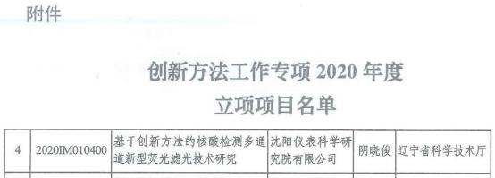 近日,科技部下達(dá)了“2020年度創(chuàng)新方法專項(xiàng)”項(xiàng)目立項(xiàng)通知,在省科技廳的指導(dǎo)下、在遼寧省創(chuàng)新方法研究會(huì)的支持下,我院聯(lián)合沈陽(yáng)工業(yè)大學(xué)、沈陽(yáng)藥科大學(xué)共同申報(bào)的“基于創(chuàng)新方法的核酸檢測(cè)多通道新型熒光濾光片技術(shù)研究”項(xiàng)目獲得立項(xiàng)支持。