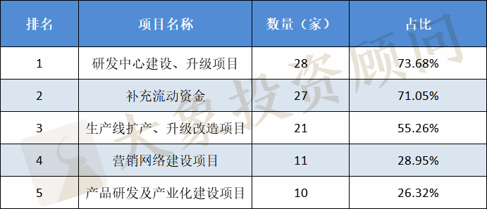 2015-2020 年期間新上市的38家企業的 IPO 募投項目主要有以下幾個方面: