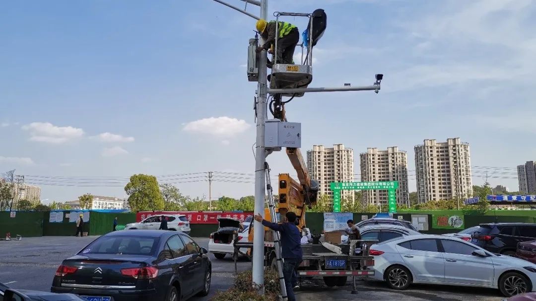除了地面監(jiān)控,調(diào)度平臺(tái)還接入了一個(gè)高空“鷹眼”——在位于南京市建鄴區(qū)江山大街的一個(gè)通信高塔上,架設(shè)在50米高空的360度高清攝像頭將周邊所有的工地納入視線。