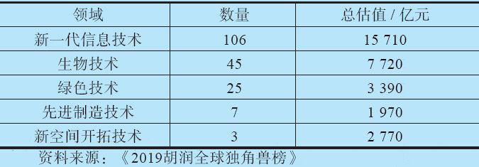 表1.2 2019 年全球技術(shù)驅(qū)動獨角獸概況