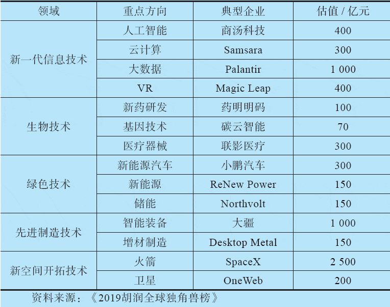 表1.3 2019 年全球技術(shù)驅(qū)動獨角獸重點領(lǐng)域與典型企業(yè)
