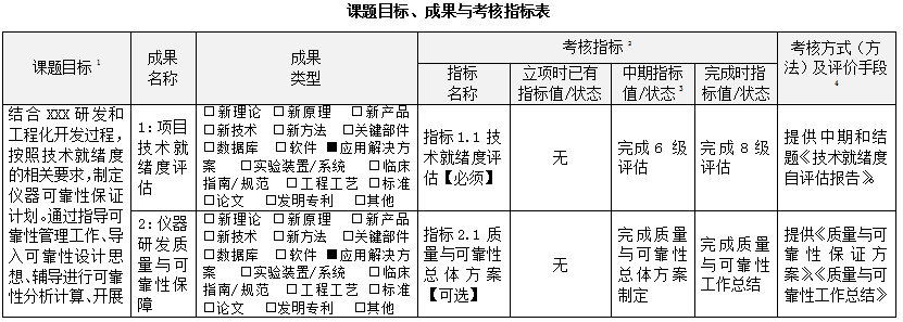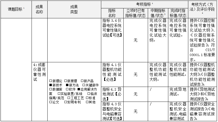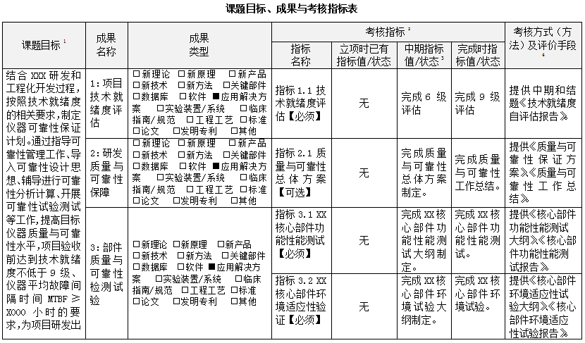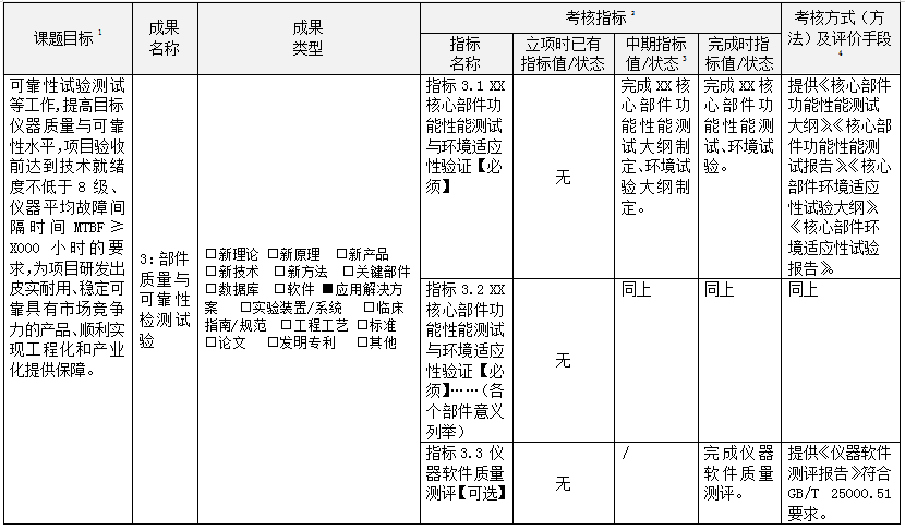 國家重大科學儀器專項-可靠性典型指標設置案例