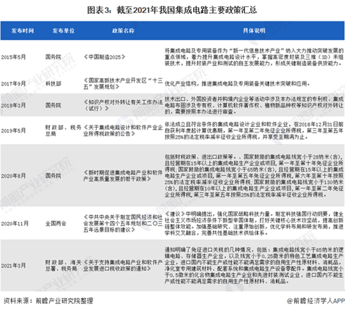 圖表3:截至2021年我國(guó)集成電路主要政策匯總