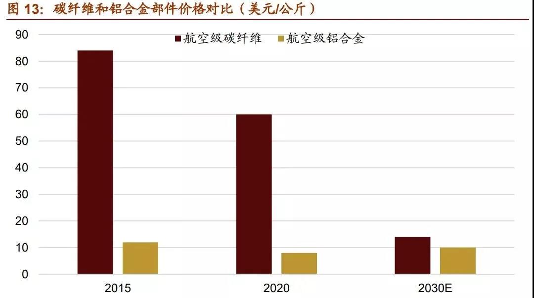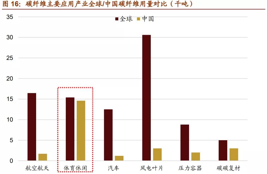 此外,碳纖維在其他應(yīng)用領(lǐng)域還有很大潛力可以挖掘。以主要競爭對手鋁合金為例,碳 纖維和鋁合金同屬替換鋼材的輕量化材料,碳纖維在強(qiáng)度、化學(xué)穩(wěn)定性等性能上都占優(yōu), 并且在飛機(jī)部件、高性能汽車車架、自行車架等產(chǎn)品相比鋁合金都有更好的表現(xiàn)。但受 累于高昂的價格,目前碳纖維應(yīng)用大多局限于高附加值產(chǎn)品。2016 年世界鋁材年需求 量約是碳纖維的 500-600 倍,行業(yè)產(chǎn)值約為 50 倍,且受益于汽車工業(yè)的發(fā)展鋁材需求 近年也在快速增長。隨著技術(shù)的進(jìn)步壓低碳纖維的成本,未來碳纖維還有廣闊的市場空間。