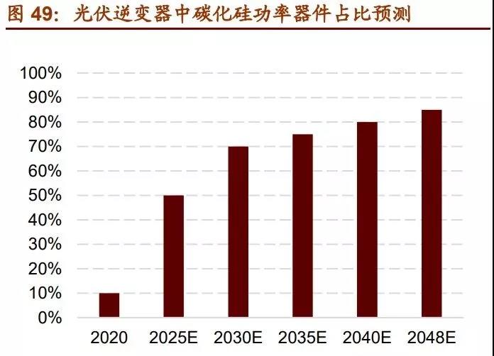 4)智能電網(wǎng):固態(tài)變壓器、 柔性交流輸電、柔性直流輸電、高壓直流輸電及配電系統(tǒng)。隨著碳化硅功率器件的進(jìn)一步發(fā)展,其在各個領(lǐng)域的滲透率不斷提高,據(jù) Yole,全球車載 SiC 功率器件的市場空間 為預(yù)計(jì)到 2024 年可以達(dá)到 19.3 億美金,對應(yīng) 2018-2024 年復(fù)合增速達(dá)到 29%。據(jù)天 科合達(dá)招股說明書預(yù)測,碳化硅功率器件在光伏逆變器中的占比在2025年將達(dá)到50%, 軌道交通中碳化硅器件應(yīng)用占比也將逐步上升。