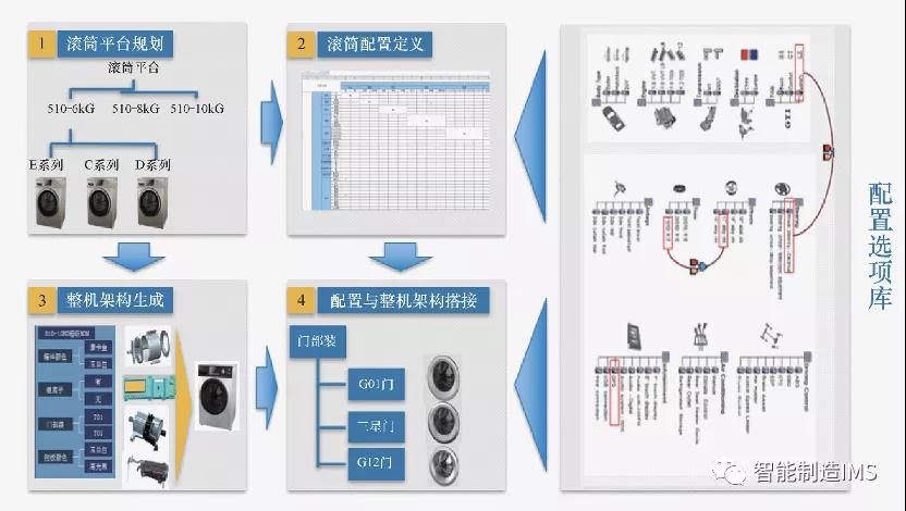 該公司在產(chǎn)品數(shù)據(jù)管理系統(tǒng)( PDM) 集成應用、數(shù)字化工藝管理系統(tǒng)建設(shè)( DPM) 及仿生學設(shè)計、拓撲優(yōu)化設(shè)計、動力學仿真、流體仿真和參數(shù)優(yōu)化等技術(shù)引進的基礎(chǔ)上, 將洗衣電器產(chǎn)品進行模塊化、參數(shù)化設(shè)計,將產(chǎn)品研發(fā)系統(tǒng)與外部銷售系統(tǒng)對接, 當外部銷售配置相應功能后, 內(nèi)部系統(tǒng)可快速基于產(chǎn)品系列化超級BOM自動生成選配后的制造BOM, 用于生產(chǎn)下達, 滿足個性化定制的快速交付需求。超級BOM 承載的管理模塊如圖4 所示。