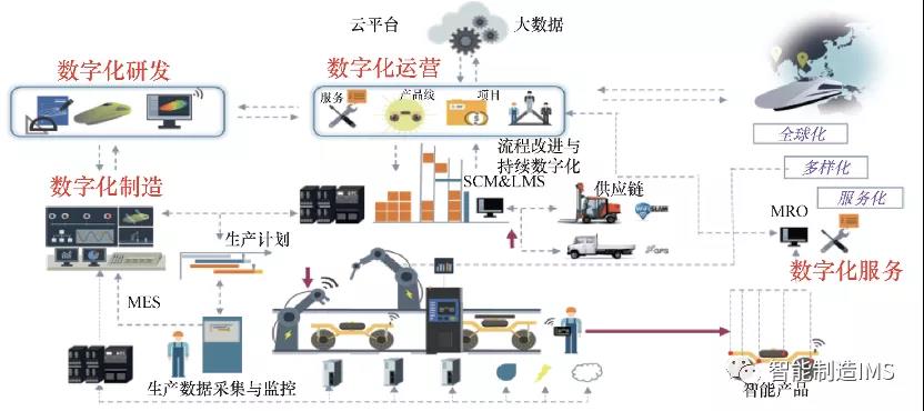 借助互聯(lián)網(wǎng)、云平臺、大數(shù)據(jù)和人工智能等新一代信息技術(shù),實現(xiàn)個性化定制,以及跨企業(yè)、跨行業(yè)和跨地區(qū)的網(wǎng)絡(luò)協(xié)同制造,并促動企業(yè)從生產(chǎn)型制造向服務(wù)型制造劃設(shè)計、產(chǎn)品開發(fā)和生產(chǎn)優(yōu)化,實現(xiàn)產(chǎn)品全生命周期的閉轉(zhuǎn)變。例如,利用人工智能技術(shù)實現(xiàn)智能產(chǎn)品的遠程診斷環(huán)控制。新一代信息技術(shù)與先進制造技術(shù)的深度融合如圖2所示。