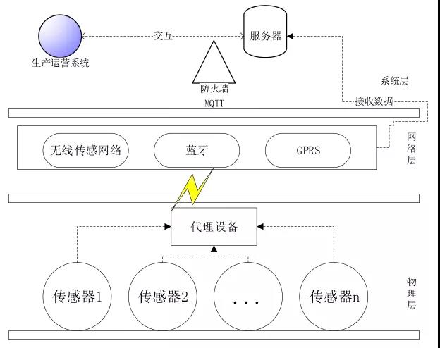 生產(chǎn)運營系統(tǒng)的技術(shù)框架分為三層:物理層、網(wǎng)絡層、系統(tǒng)層。其中,物理層負責數(shù)據(jù)采集,主要通過布置在生產(chǎn)現(xiàn)場的傳感器或者PLC對數(shù)據(jù)進行采集;網(wǎng)絡層負責數(shù)據(jù)的傳輸;系統(tǒng)層主要包括服務端和應用端,是整個系統(tǒng)的軟件部分。