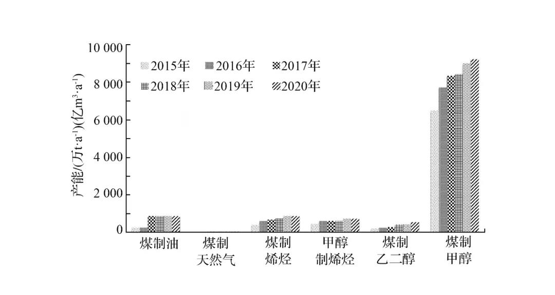 “十三五”以來,我國現(xiàn)代煤化工無論是在產(chǎn)業(yè)發(fā)展、基地建設,還是在技術(shù)創(chuàng)新等方面均取得顯著成績,并繼續(xù)保持國際領(lǐng)先地位,為實施我國石化原料多元化戰(zhàn)略及提升國家能源戰(zhàn)略安全保障能力提供了重要支撐。由于近年煤制甲醇發(fā)展較快,產(chǎn)業(yè)規(guī)模大,先進技術(shù)和大型化裝置規(guī)模占比高,筆者將煤制甲醇也一并納入現(xiàn)代煤化工產(chǎn)業(yè)進行研究。