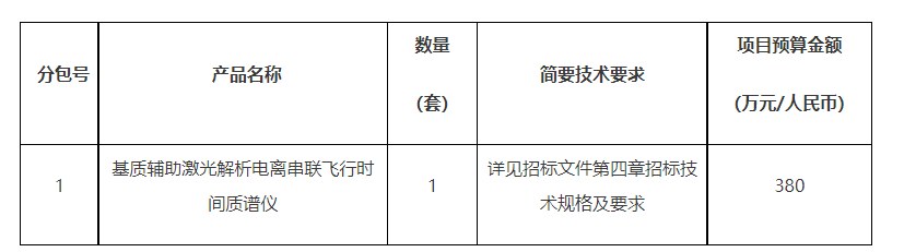 項(xiàng)目名稱:基質(zhì)輔助激光解析電離串聯(lián)飛行時(shí)間質(zhì)譜儀