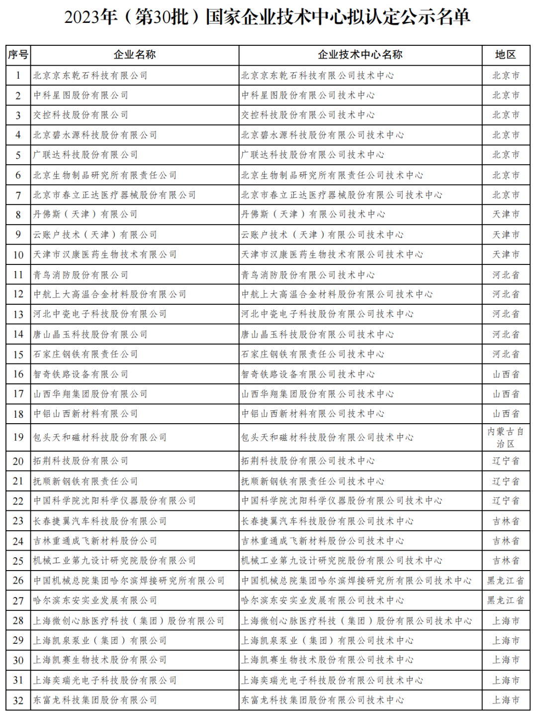 根據《國家企業技術中心認定管理辦法》(國家發展改革委、科技部、財政部、海關總署、稅務總局2016年第34號令)和《國家發展改革委辦公廳關于組織開展2023年(第30批)國家企業技術中心認定及國家企業技術中心評價工作的通知》(發改辦高技〔2023〕207號),在地方主管部門審核和推薦的基礎上,國家發展改革委創新和高技術發展司組織了2023年(第30批)國家企業技術中心的認定復核工作,123家企業和6家分中心擬認定為新一批國家企業技術中心。其中儀器儀表企業5家,分別是:丹佛斯(天津)有限公司技術中心、中國科學院沈陽科學儀器股份有限公司技術中心、杭州炬華科技股份有限公司技術中心、煙臺艾睿光電科技股份有限公司技術中心、青島乾程科技股份有限公司技術中心。