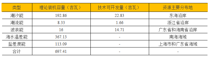 據(jù)聯(lián)合國環(huán)境署數(shù)據(jù)顯示,溫差能、波浪能、鹽差能和潮汐/潮流能開發(fā)潛力分別占到了全球海洋能開發(fā)潛力的58%、39%、2%和2%。其中,我國海洋能發(fā)電蘊藏量約占全球海洋能總蘊藏量的8%,近海海洋能資源理論裝機容量約為697吉瓦,技術可開發(fā)量超過70吉瓦;深遠海海域的波浪能資源遠超近海海域,同時具有豐富的洋流能資源。