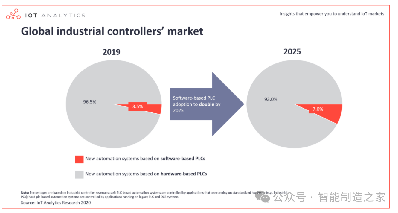 PLC作為自動化領域的新星,正逐漸受到工業生產的青睞,特別是在日益定制化和復雜化的生產需求背景下。軟PLC通過將硬PLC的功能集成到軟件包中,運行于通用工控電腦上,形成了高性能的可編程自動化控制器(PAC)。其優越之處在于,它能夠根據具體應用進行定制開發,實現復雜的控制邏輯,并利用PC的強大力量和多樣化的軟件資源,達成更快速、精確的控制效果。盡管短期來看,硬PLC的市場份額因用戶習慣和風險規避心理難以被迅速取代,但從長遠看,軟PLC市場份額預計將持續增長。據預測,到2025年,基于軟PLC的自動化系統占比將翻番。
