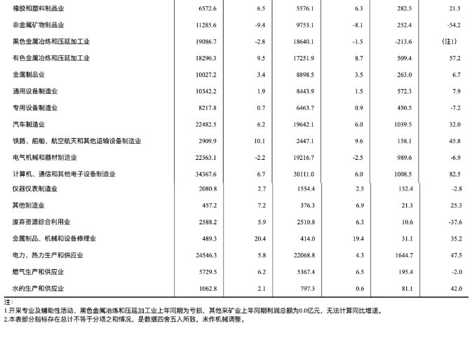 1-3月份,主要行業(yè)利潤情況如下:計(jì)算機(jī)、通信和其他電子設(shè)備制造業(yè)利潤增長82.5%,有色金屬冶煉和壓延加工業(yè)增長57.2%,電力、熱力生產(chǎn)和供應(yīng)業(yè)增長47.5%,汽車制造業(yè)增長32.0%,紡織業(yè)增長25.0%,通用設(shè)備制造業(yè)增長7.9%,石油和天然氣開采業(yè)增長3.8%,農(nóng)副食品加工業(yè)增長2.0%,化學(xué)原料和化學(xué)制品制造業(yè)下降3.5%,電氣機(jī)械和器材制造業(yè)下降6.9%,專用設(shè)備制造業(yè)下降7.2%,煤炭開采和洗選業(yè)下降33.5%,非金屬礦物制品業(yè)下降54.2%,石油煤炭及其他燃料加工業(yè)由盈轉(zhuǎn)虧,黑色金屬冶煉和壓延加工業(yè)虧損增加。